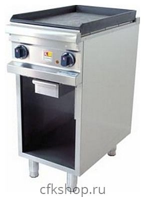 Поверхность из хромированной стали прогревается абсолютно равномерно, что позволяет избежать пригорания и обеспечивает отличные вкусовые качества блюд. Равномерному обжариванию без пригораний способствует и гладкая структура рабочей поверхности. Для предотвращения разбрызгивания жира имеет жиросборник и бортик по периметру.