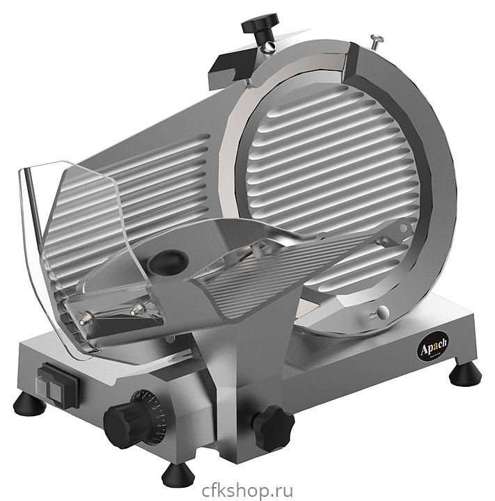 Слайсер Apach ASL250 предназначен для нарезки различных продуктов на предприятиях общественного питания и торговли. Модель оснащена вентилируемым мотором и встроенным затачивающим устройством. Корпус выполнен из литого анодированного алюминиевого сплава, нож - из кованой углеродистой стали 100Cr6.