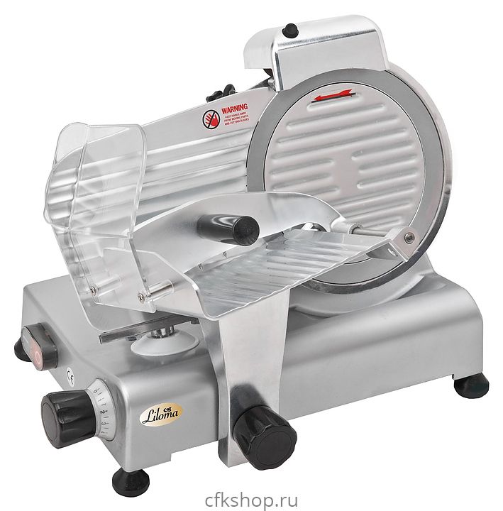 Слайсер LILOMA MS 220 ST предназначен для нарезки различных продуктов на предприятиях общественного питания и торговли. Модель оснащена устройством для подачи мяса, которое установлено на шариковых подшипниках для обеспечения плавности хода и резиновыми ножками для отсутствия вибраций и безопасности использования.