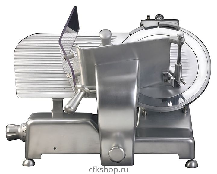 Профессиональный мотор с функцией принудительной вентиляции исключает возможность перегрева оборудования, а также делает его работу практически бесшумной. Слайсер оснащен фиксированным устройством для заточки ножа с двойным наждаком. Поддон для продуктов и перемычка для регулирования толщины среза выполнены из алюминия, отполированного путем анодирования, что обеспечивает их гигиеническую чистоту и защиту от коррозии.