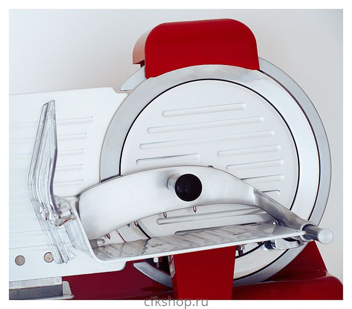 Профессиональный мотор с функцией принудительной вентиляции исключает возможность перегрева оборудования, а также делает его работу практически бесшумной. Слайсер оснащен фиксированным устройством для заточки ножа с двойным наждаком. Крышка ножа, поддон для продуктов и перемычка для регулирования толщины среза выполнены из алюминия, отполированного путем анодирования, что обеспечивает их гигиеническую чистоту и защиту от коррозии.