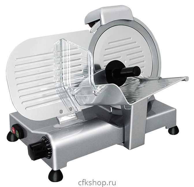 Слайсер Vortmax GSM 220 предназначен для нарезки мяса, сыра, колбасных изделий и продуктов питания на ломтики заданной толщины на предприятиях общественного питания и торговли, а также в производственных цехах, деятельность которых связана с выпуском гастрономических товаров. Модель оснащена фиксированным затачивающим устройством и вентилируемым мотором. Устройство подачи продукта выполнено из анодированного алюминия.
