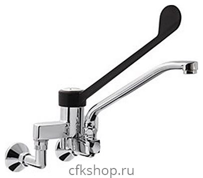 Смеситель Monolith R 0102020211 предназначен для ежедневного использования и подачи воды на кухнях в пекарнях, столовых, кафе, ресторанах и на других предприятиях общественного питания. Модель устанавливается на стену, оснащена черным удлиненным рычагом и изливом.