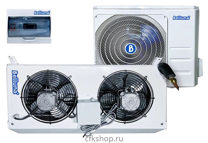 Холодильная сплит-система Belluna U103 серии Универсал предназначена для поддержания необходимого температурного режима в холодильных камерах на предприятиях пищевой промышленности, общественного питания и торговли. Холодильная машина состоит из внутреннего блока-воздухоохладителя и наружного блока. Для работы сплит-системы толщина пенополиуретановых панелей в холодильной камере должна быть не менее 80 мм.