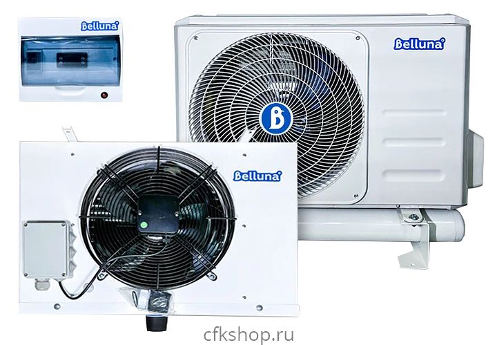 Холодильная универсальная сплит-система Belluna iP-2 предназначена для поддержания необходимого температурного режима в холодильных камерах на предприятиях пищевой промышленности, общественного питания и торговли. Инверторный компрессор с переменной производительностью от 30 до 100 % с отделителем жидкости позволяет поддерживать температуру с точностью до 0,5 °С, а также обеспечивает бесшумную работу. Холодильная машина состоит из наружного блока, внутреннего блока и щита управления. Для работы сплит-системы толщина пенополиуретановых панелей в холодильной камере должна быть не менее 80 мм.