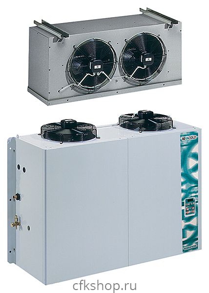 - Состоит из компрессорно-конденсаторного блока (наружного) и воздухоохладителя (внутреннего)
