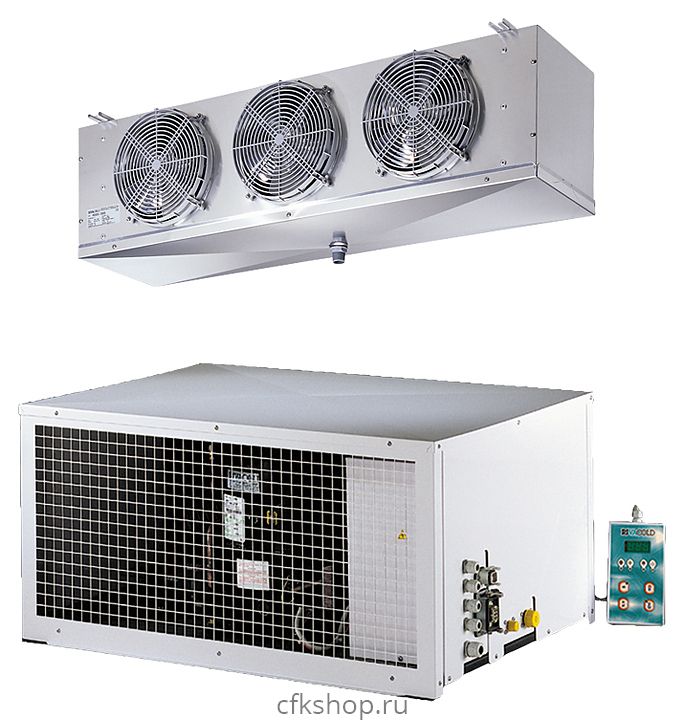 - Состоит из компрессорно-конденсаторного блока (наружного) и воздухоохладителя (внутреннего)