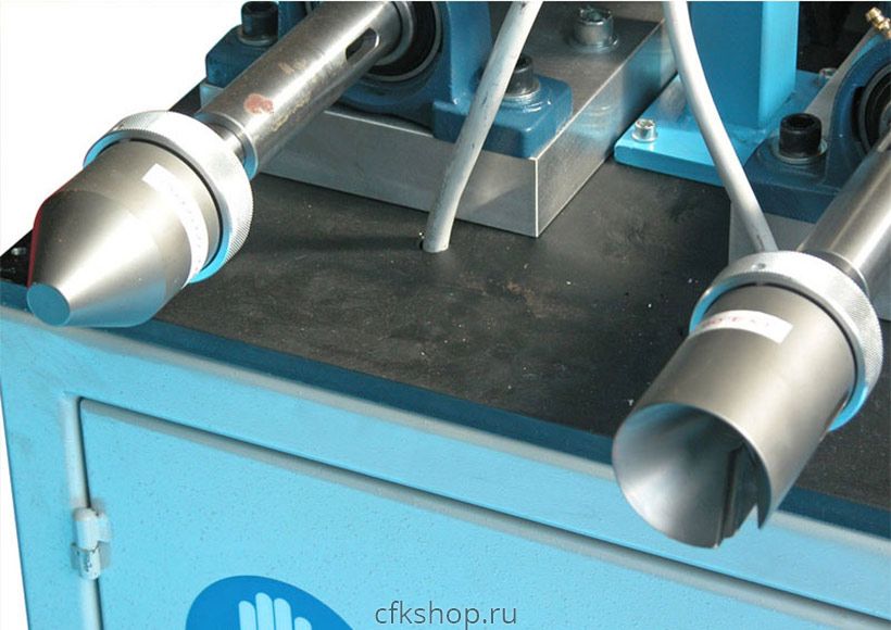 Станок с электроприводом, служащий для снятия заусенцев с внешней и внутренней поверхности труб посредством двух вращающихся головок, на которых монтирована специальная оснастка - ножи. Характеризуется ременной передачей и педалью ножного управления вращения головок