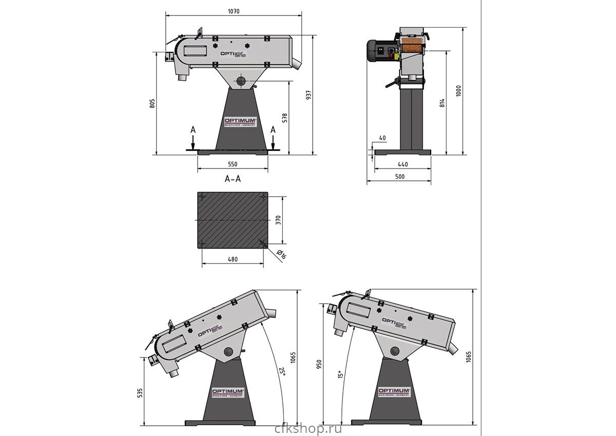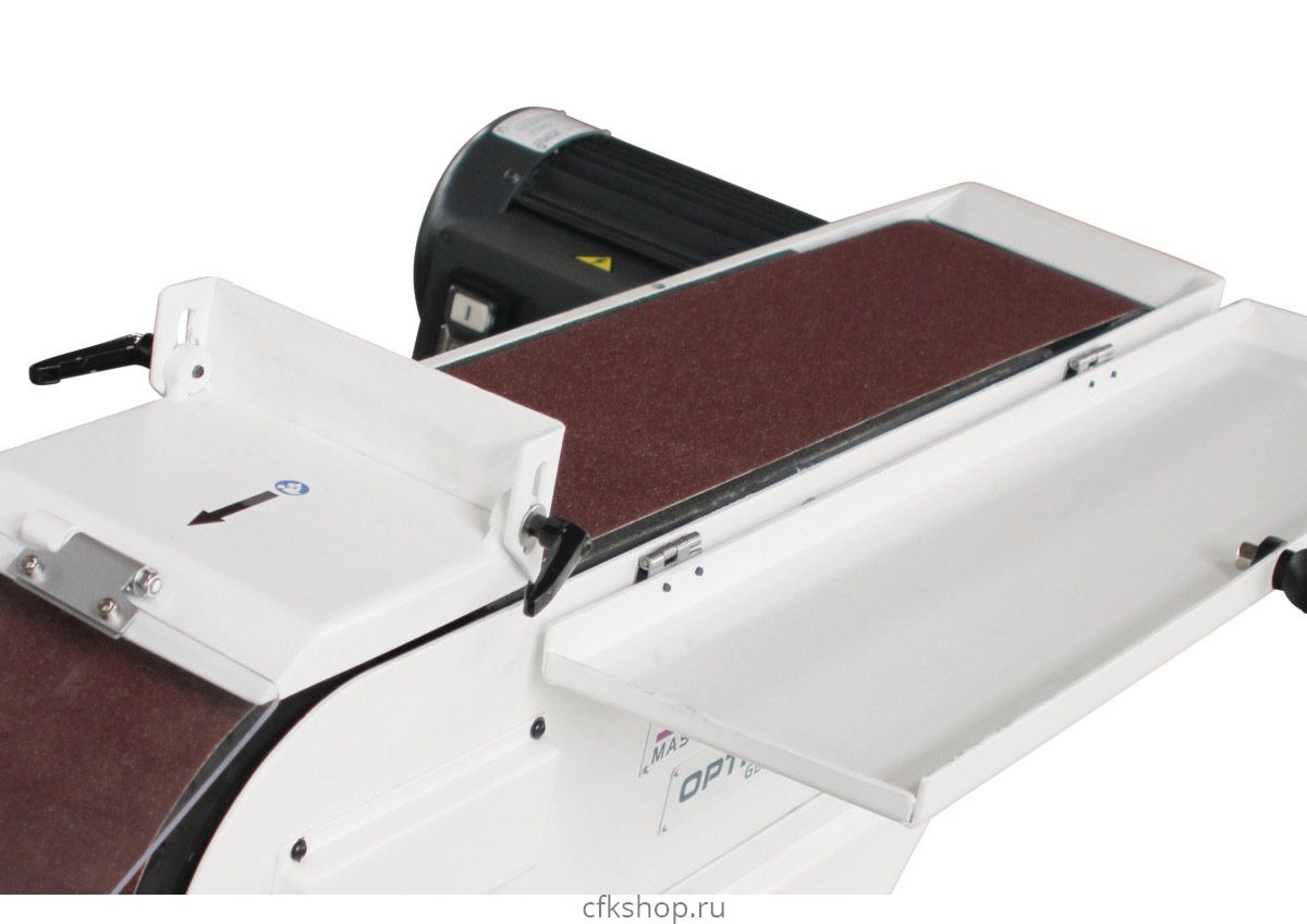 - Упор с неограниченными возможностями регулировки в верхней части станка обеспечивает быстроту и легкость шлифования заготовок