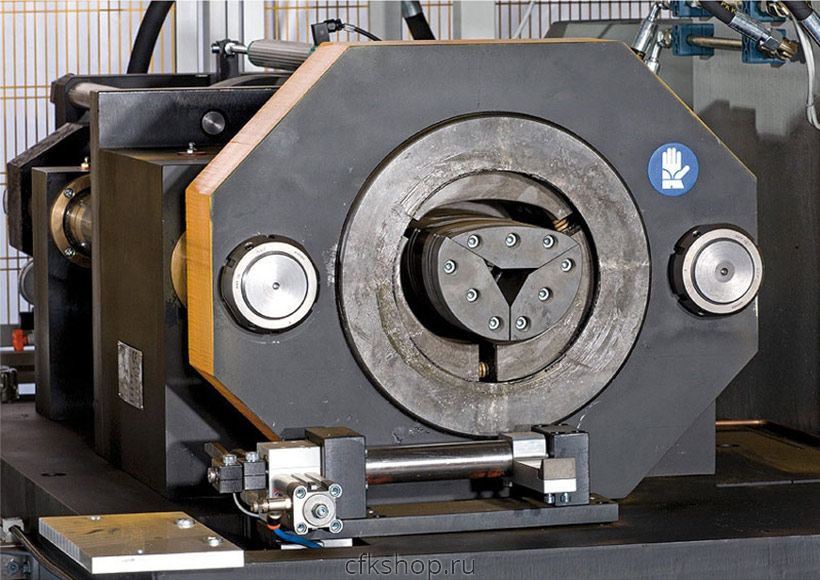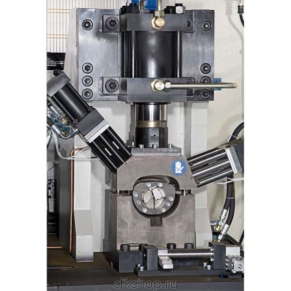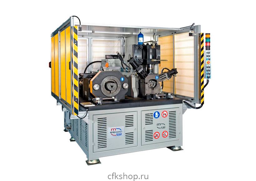 Гидравлический станок для реализации выемок, пробивки, развальцовки, расширения, редуцирования и других специализированных операций на трубах, кожухах и корпусах катализаторов автомобилей и промышленных транспортных средств. Заготовки могут иметь максимальный диаметр 200 мм и толщину нержавеющей стали максимум 2 мм.