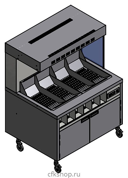 Станция Follett L1200 используется на предприятиях общественного питания и торговли для временного хранения, поддержания в теплом состоянии и последующей раздачи уже готового картофеля фри. Оборудование выполнено из нержавеющей стали.
