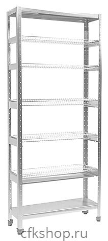 Стеллаж Пищевые Технологии Эконом СКТСК-32КЭ-2М предназначен для хранения тарелок на предприятиях общественного питания и торговли. Модель оснащена поддоном для сбора жидкости и регулируемыми по высоте ножками. Разборный каркас выполнен из оцинкованного уголка, сетки - из хромированной стали.