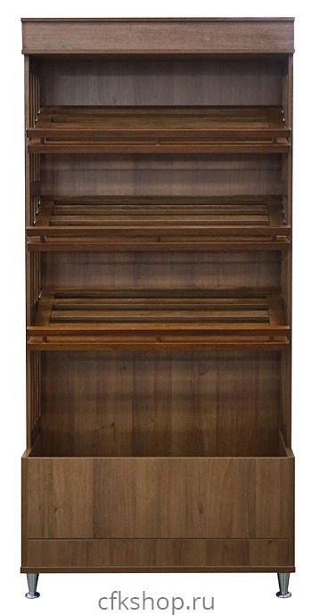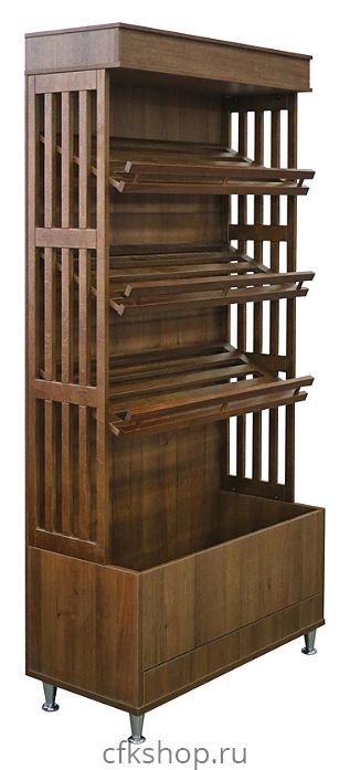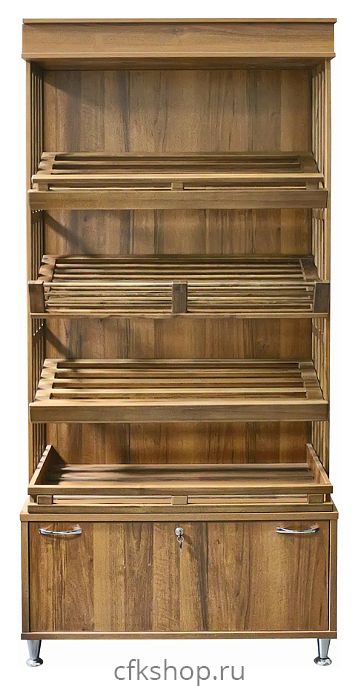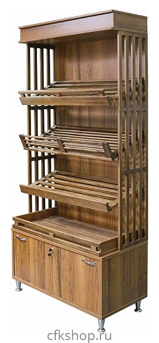 Стеллаж хлебный с тумбой Luxstahl прендназначен для демонстрации хлебной продукции в магазинах, супермаркетах, кофейнях, а также на предприятиях общественного питания и торговли. Модель оснащена 3 реечными полками, сплошнй стенкой, козырьком и тумбой. Модель выполнена из ЛДСП с элементами из фанеры, тонированные ЛКМ.