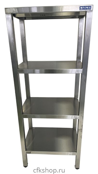 Кухонный стеллаж ATESY СТК-Л-1000.400.1600-02-Н серии Люкс предназначен для хранения кухонного инвентаря, посуды и упакованных пищевых продуктов на предприятиях общественного питания и торговли в моечных отделениях, холодных, горячих цехах и других производственных помещениях. Модель состоит из 4 стоек и 4 полок. Стойки стеллажа изготовлены из нержавеющей стали AISI 430 с квадратным сечением 40х40 мм, полки - из пищевой нержавеющей стали AISI 430, опоры ножек - из пластика.