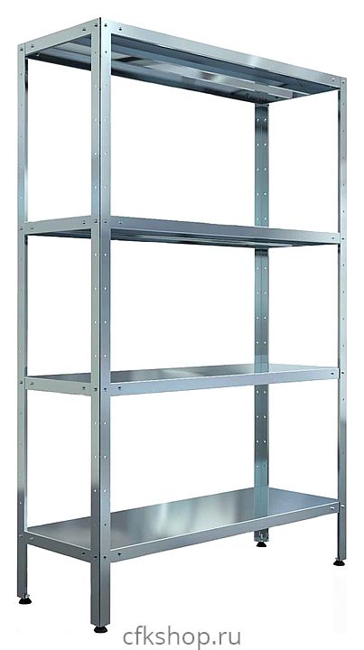 Кухонный стеллаж Assum СТП-С-10/4 предназначен для хранения посуды, инвентаря и упакованных пищевых продуктов на предприятиях общественного питания и торговли. Модель оснащена 4 полками, усиленными ребрами жесткости для увеличения полезной нагрузки, и регулируемыми по высоте пластиковыми опорами. Стойки выполнены из уголка оцинкованной стали 40x40 мм, полки - из нержавеющей стали, ребро жесткости полок - из нержавеющей стали.