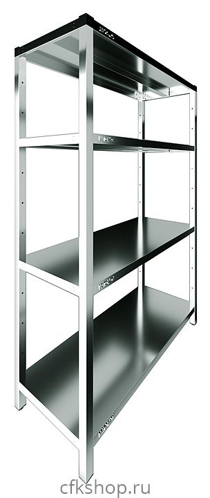 Кухонный стеллаж Restoinox СТП-12/5 предназначен для хранения посуды, инвентаря и продуктов, не требующих специального температурного режима, на предприятиях общественного питания и торговли. Модель оснащена 4 регулируемыми по высоте сплошными полками и ребрами жесткости. Сварной каркас выполнен из трубы 40х40 мм нержавеющей стали AISI 430, ребра жесткости и полки - из нержавеющей стали AISI 430.