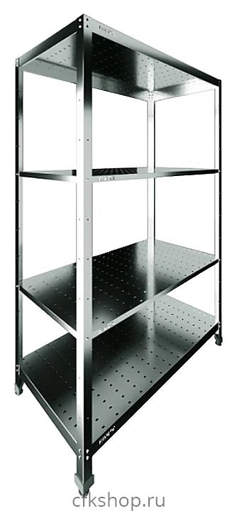 Кухонный стеллаж Restoinox СТПП-9/5-ЭЦ предназначен для хранения посуды, инвентаря и продуктов, не требующих специального температурного режима, на предприятиях общественного питания и торговли. Модель оснащена 4 регулируемыми по высоте перфорированными полками и ребрами жесткости. Разборный каркас выполнен из уголка 40х40 мм оцинкованной стали, ребра жесткости и полки - из нержавеющей стали AISI 430.