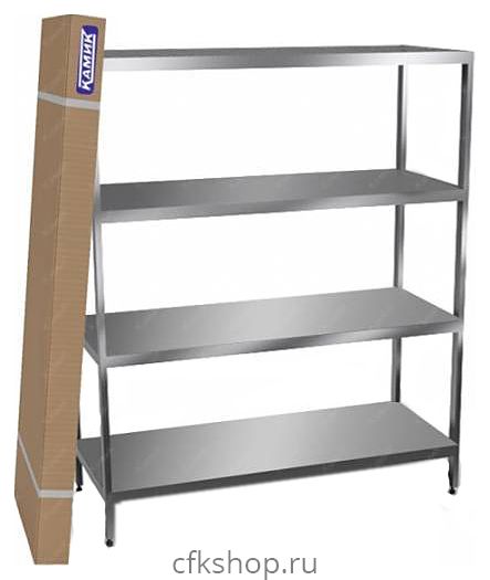 Кухонный стеллаж КАМИК Ст-Р-3136 предназначен для хранения посуды, кухонных приборов и принадлежностей, а также продуктов, не требующих специального температурного режима, на предприятиях общественного питания и торговли. Модель оснащена 4 регулируемыми по высоте полками. Разборный каркас выполнен из трубы 40x20 мм нержавеющей стали AISI 304, полки - из нержавеющей стали AISI 304.
