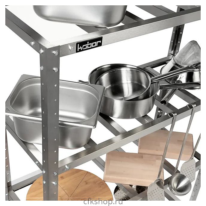 Стеллаж Кобор СКР-150/40/430 предназначен для хранения посуды, кухонной утвари и сухих продуктов на предприятиях общественного питания, торговли и в промышленно-производственных помещениях. Каркас выполнен в виде уголка 40х40 мм из нержавеющей стали, решетчатые полки - из нержавеющей стали AISI 430. Уникальная система крепления полок обеспечивает жёсткость конструкции стеллажа.