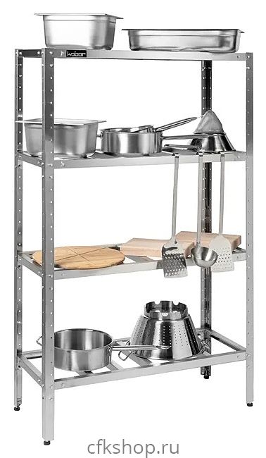 Стеллаж Кобор СКР-60/40 предназначен для хранения посуды, кухонной утвари и сухих продуктов на предприятиях общественного питания, торговли и в промышленно-производственных помещениях. Каркас выполнен в виде уголка 40х40 мм из оцинкованной стали, решетчатые полки - из нержавеющей стали AISI 430. Уникальная система крепления полок обеспечивает жёсткость конструкции стеллажа.