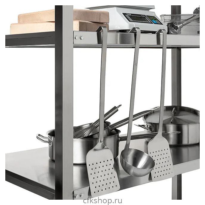 Кухонный стеллаж Кобор СКТР-180/40 предназначен для хранения посуды, различного инвентаря и сухих продуктов на предприятиях общественного питания и торговли. Модель оснащена регулируемыми по высоте ножками с опорами, которые не подвержены коррозии. Разборный каркас нержавеющая сталь, труба 40х40, полки - из нержавеющей стали AISI 430.