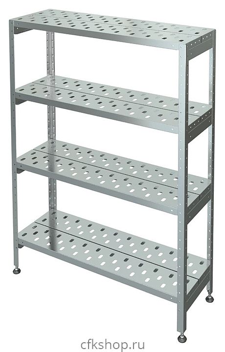 Стеллаж Марихолодмаш С-4Р-0,5/0,95/1,8 предназначен для хранения кухонного инвентаря и упакованных пищевых продуктов с целью увеличения полезного пространства помещений в моечных отделениях, складских помещениях и в холодильных камерах на предприятиях общественного питания и торговли. Полки выполнены из нержавеющей стали, стойки - из оцинкованного стального уголка, ножки с регулиремыми опорами - из оцинкованного стального уголка 40х40 мм с подгибом краёв во внутрь толщиной 1 мм.