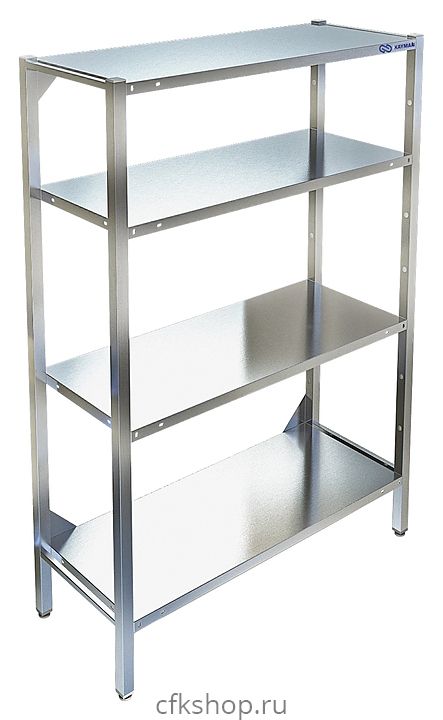 Кухонный стеллаж Техно-ТТ СТР-154/1200 предназначен для хранения посуды, различного инвентаря и сухих продуктов на предприятиях общественного питания и торговли. Модель оснащена регулируемыми по высоте полками и ножками, что позволяет компенсировать неровности пола. Разборный каркас выполнен из трубы 40х40 мм из нержавеющей стали AISI 430, сплошные полки - из нержавеющей стали AISI 304.