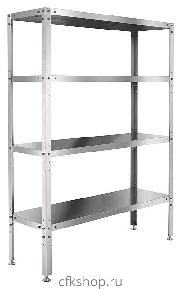 Кухонный стеллаж ТТМ СТ-150/4 эконом-класса предназначен для хранения кухонного инвентаря и сухих пищевых продуктов на предприятиях общественного питания и торговли. Разборная модель оснащена регулируемыми опорами и сплошными полками, усиленными дополнительными ребрами жесткости (вставками). Стойки выполнены из оцинкованного уголка 40х40 мм, полки - из нержавеющей стали AISI 430.