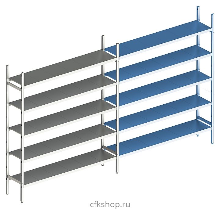 Модель представляет собой дополнительную линейную секцию модульной стеллажной системы и может стыковаться в линию с базовой и дополнительной угловой секциями.