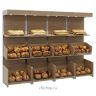 Стеллаж пристенный Carboma S6-22 06 со сплошными деревянными полками предназначен для демонстрации хлеба, батонов и других хлебобулочных изделий в магазинах, супермаркетах, кофейнях, а также на предприятиях общественного питания и торговли. Модель оснащена 1 полкой, подвесным ящиком и козырьком с освещением. Изделие выполнено из МДФ, плинтуса - из нержавеющей стали, стойки обшиты выкрашенной в серый цвет сталью.