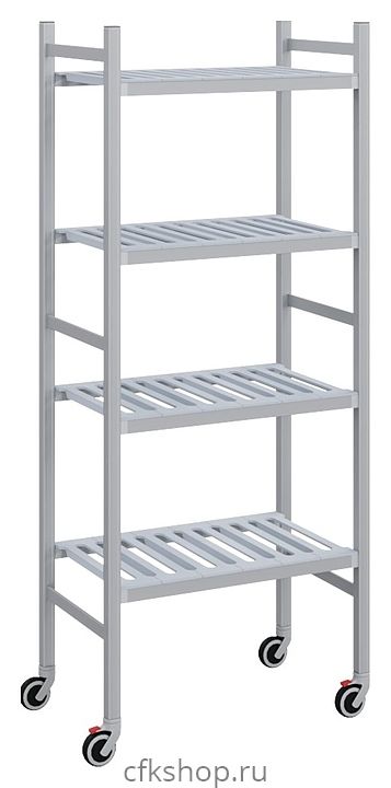 Мобильный стеллаж-тележка POLAIR LOAD.ME.MOBILE POLY МР18.4.50.09 предназначен для хранения и транспортировки продукции в холодильных и морозильных камерах, кухнях, лабораториях, на предприятиях общественного питания и торговли, а также в прачечных и других местах общего хранения. Модель оснащена 4 полками-решетками и колесами. Каркас выполнен из анодированного алюминиевого профиля, полки - из полиэтилена ПЭВД.