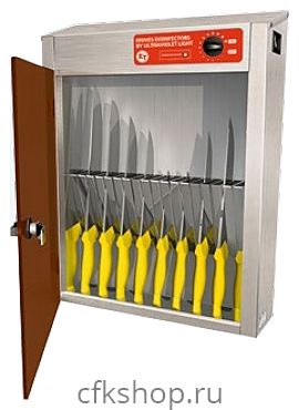 Стерилизатор для ножей Koneteollisuus Oy (KT) 725 предназначен для дезинфекции столовых приборов на предприятиях пищевой промышленности и торговли. Модель с ультрафиолетовой обработкой оснащена кнопкой включения, цифровым таймером и наклонным держателем. Корпус выполнен из нержавеющей стали AISI 304, дверца - из ПВХ.