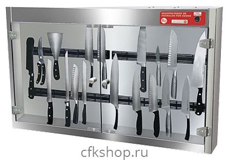 Стерилизатор для ножей Koneteollisuus Oy (KT) 921 предназначен для дезинфекции столовых приборов на предприятиях пищевой промышленности и торговли. Модель оснащена 4 магнитными держателями, кнопкой включения озонового генератора и цифровым таймером. Корпус выполнен из нержавеющей стали AISI 304, дверца - из ПВХ.