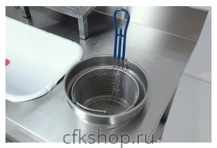 В комплект поставки входят 2 емкости для панировки, круглая корзина, погружное ведро, гастроемкость для отходов GN 1/2-200 и прямоугольная корзина.