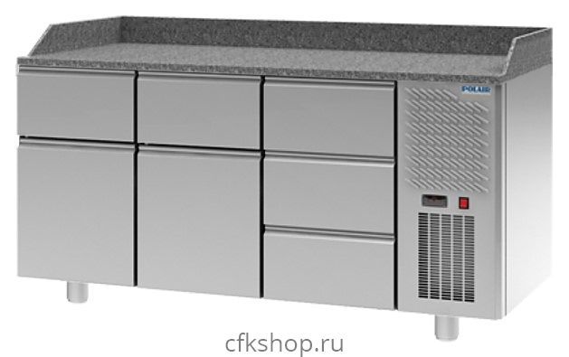 Холодильный стол для пиццы POLAIR TM3GNpizza-113-G серии Grande предназначен для раскатки теста, хранения продуктов и обработки ингредиентов для приготовления пиццы на предприятиях общественного питания и торговли. Цельнозаливные корпус и двери изготовлены из стали и обеспечивают механическую прочность, термоизоляцию, герметичность и долговечность стола. Оборудование рассчитано на работу при температуре окружающей среды до 43 °С.
