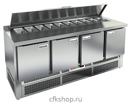Стол для салатов HICOLD SLE1-1111GN используется на предприятиях общественного питания и торговли для хранения и обработки ингредиентов, используемых для приготовления пиццы, салатов и других блюд, а также для охлаждения и кратковременного хранения скоропортящихся продуктов и напитков. Модель совмещает в себе рабочую поверхность и охлаждаемый объем, что значительно упрощает работу повара, так как все необходимые компоненты всегда находятся под рукой. Корпус и столешница выполнены из нержавеющей стали.