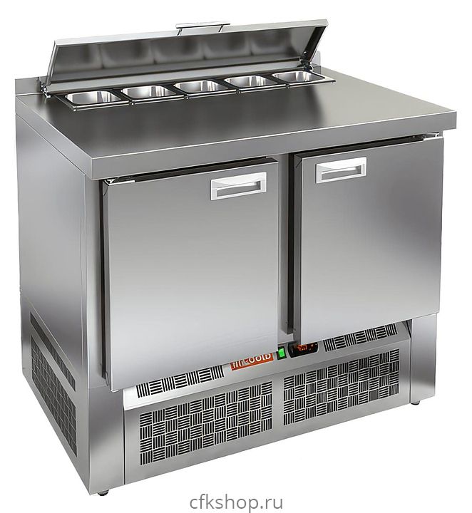 Стол для салатов HICOLD SLE2-11GN используется на предприятиях общественного питания и торговли для хранения и обработки ингредиентов, используемых для приготовления пиццы, салатов и других блюд, а также для охлаждения и кратковременного хранения скоропортящихся продуктов и напитков. Модель совмещает в себе рабочую поверхность и охлаждаемый объем, что значительно упрощает работу повара, так как все необходимые компоненты всегда находятся под рукой. Корпус и столешница выполнены из нержавеющей стали.