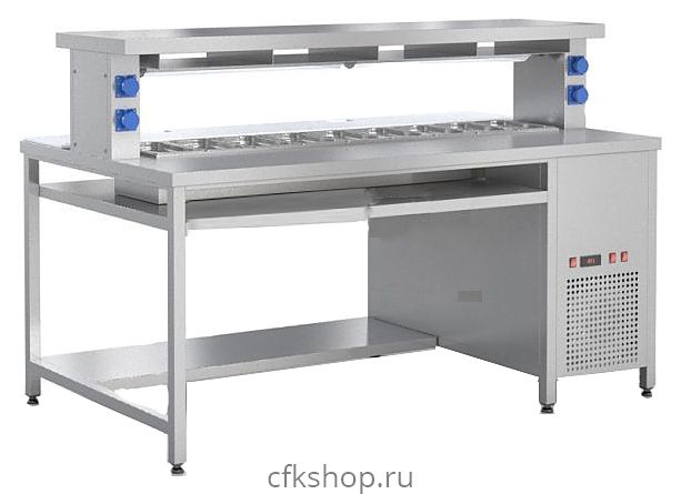 Фасовочный стол RoboLabs СФО-190 предназначен для кратковременного хранения и нарезки ингридиентов для бургеров и фасовки готовых продуктов на предприятиях общественного питания и торговли. Островная модель оснащена охлаждаемой ванной, тепловой поверхностью и подсветкой. Корпус выполнен из нержаваеющей стали AISI 430.