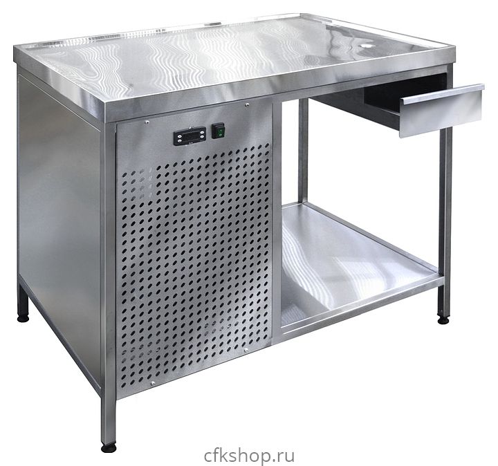 Холодильный стол Finist СХСо-1000-700 предназначен для разделки полуфабрикатов мяса и рыбы, а также для демонстрации и выкладки продуктов на предприятиях общественного питания и торговли. Модель оснащена расположенным сбоку агрегатным отсеком, столешницей с охлаждаемой поверхностью, открытой полкой для хранения инвентаря, выдвижным ящиком-лотком, устойчивыми ножками с подпятниками, кабелем питания с евровилкой и кнопочной панелью управления с цифровым дисплеем. Корпус выполнен из высококачественной нержавеющей стали.