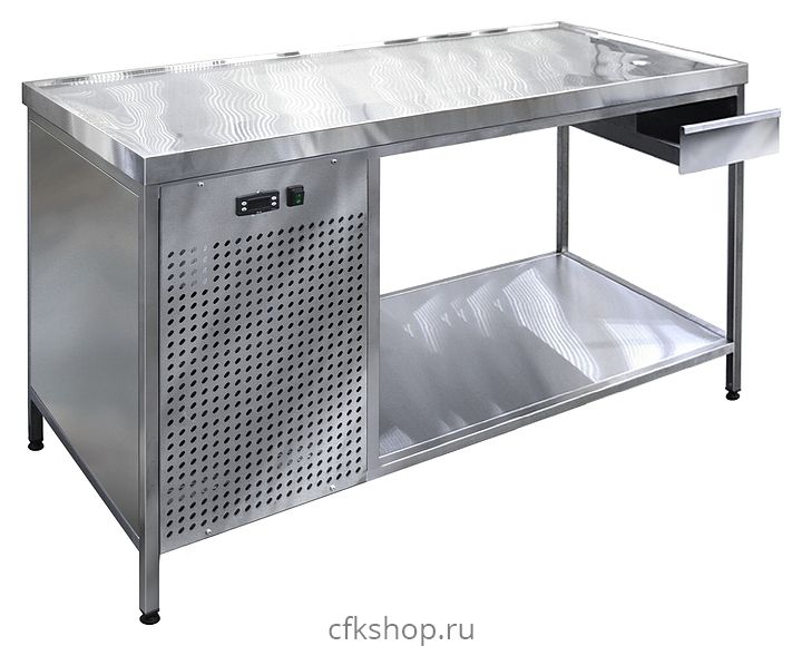 Холодильный стол Finist СХСо-1500-700 предназначен для разделки полуфабрикатов мяса и рыбы, а также для демонстрации и выкладки продуктов на предприятиях общественного питания и торговли. Модель оснащена расположенным сбоку агрегатным отсеком, столешницей с охлаждаемой поверхностью, открытой полкой для хранения инвентаря, выдвижным ящиком-лотком, устойчивыми ножками с подпятниками, кабелем питания с евровилкой и кнопочной панелью управления с цифровым дисплеем. Корпус выполнен из высококачественной нержавеющей стали.
