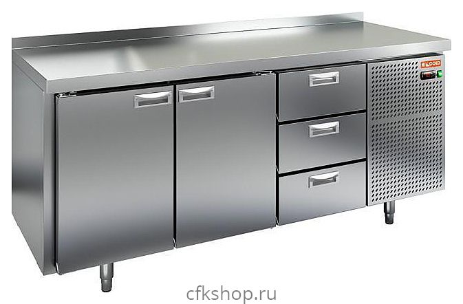 Холодильный стол HICOLD GN 113 BR3 TN состоит из рабочей поверхности, на которой можно раскатывать тесто и обрабатывать ингредиенты для приготовления блюд, и камеры, предназначенной для охлаждения и кратковременного хранения скоропортящихся продуктов и напитков. Оборудование подходит для использования на предприятиях общественного питания.
