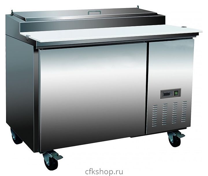 Холодильный стол Koreco TPP44 (TPP1) предназначен для раскатки теста и обработки ингредиентов для приготовления пиццы, салатов, закусок и сэндвичей, охлаждения и кратковременного хранения скоропортящихся продуктов и напитков на предприятиях общественного питания и торговли. Корпус и камера выполнены из нержавеющей стали AISI 304, вставкавставки, накладывающейся на рабочую поверхность - из пищевого полиэтилена.