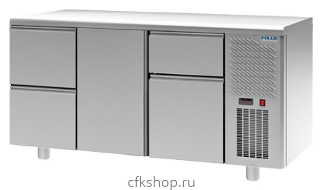 Холодильный стол POLAIR TM3-201-G серии Grande предназначен для хранения продуктов и обработки ингредиентов на рабочей поверхности на предприятиях общественного питания и торговли. Модель оснащена 4 ящиками среднего размера. Цельнозаливной корпус и двери изготовлены из нержавеющей стали, обеспечивающей механическую прочность, термоизоляцию, герметичность и долговечность стола, полки - из окрашенной оцинкованной проволки. Оборудование рассчитано на работу при температуре окружающей среды до 43 °С и относительной влажности воздуха до 80%.