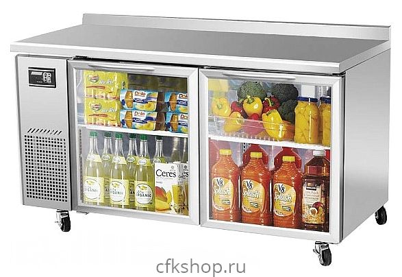 Холодильный стол Turbo air KGWR15-2-600 предназначен для обработки ингредиентов для приготовления блюд и охлаждения продуктов и напитков на предприятиях пищевой промышленности, общественного питания и торговли. Модель оснащена 2 стеклянными дверцами, 2 регулируемыми полками и 4 колесами. Корпус выполнен из нержавеющей стали (гальванизированная сталь на оборотной стороне и внизу), пол - из нержавеющей стали с алюминиевыми вставками по бокам и сзади, полки - из толстой стальной проволоки с виниловым покрытием, дверные петли -из высококачественной нержавеющей стали, уплотнение - из ABS-пластика.