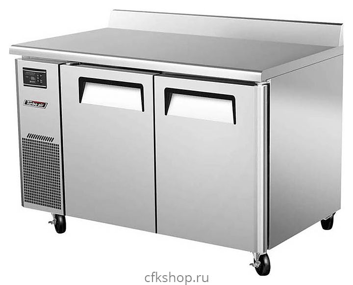 Холодильный стол Turbo air KWR12-2 предназначен для раскатки теста, обработки, охлаждения и кратковременного хранения продуктов и напитков на предприятиях общественного питания и торговли. Корпус выполнен из нержавеющей стали (гальванизированная сталь на оборотной стороне и внизу) с применением пожаробезопасных стенок толщиной 60 мм, уплотнения - из АБС-пластика (акрилонитрилбутадиенстирола), не пропускающего конденсата, пол - из нержавеющей стали с алюминиевыми вставками по бокам и сзади оборудования, регулируемые полки - из толстой стальной проволоки с виниловым покрытием.