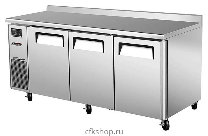 Холодильный стол Turbo air KWR18-3 предназначен для раскатки теста, обработки, охлаждения и кратковременного хранения продуктов и напитков на предприятиях общественного питания и торговли. Корпус выполнен из нержавеющей стали (гальванизированная сталь на оборотной стороне и внизу) с применением пожаробезопасных стенок толщиной 60 мм, уплотнения - из АБС-пластика (акрилонитрилбутадиенстирола), не пропускающего конденсата, пол - из нержавеющей стали с алюминиевыми вставками по бокам и сзади оборудования, регулируемые полки - из толстой стальной проволоки с виниловым покрытием.