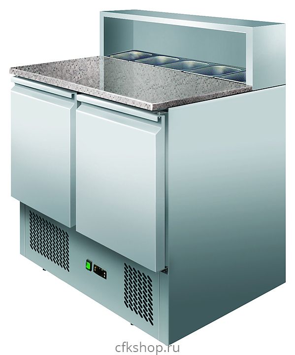 Холодильный стол для пиццы Koreco PS900 используется на предприятиях общественного питания и торговли для раскатки теста и обработки ингредиентов для приготовления пиццы, охлаждения и кратковременного хранения скоропортящихся продуктов и напитков. Корпус выполнен из нержавеющей стали AISI 304.