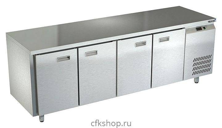 Холодильный стол Техно-ТТ СПБ/О-121/40-2206 предназначен для раскатки теста, обработки, охлаждения и кратковременного хранения продуктов и напитков на предприятиях общественного питания и торговли. Модель оснащена 4 секциями с 4 дверьми, петлями-доводчиками (Польша), регулируемой по высоте полкой-решеткой и круглыми ножками, регулируемыми по высоте на 50 мм (Италия). Корпус выполнен из нержавеющей стали AISI 430, задняя стенка и дно - из оцинкованной стали.