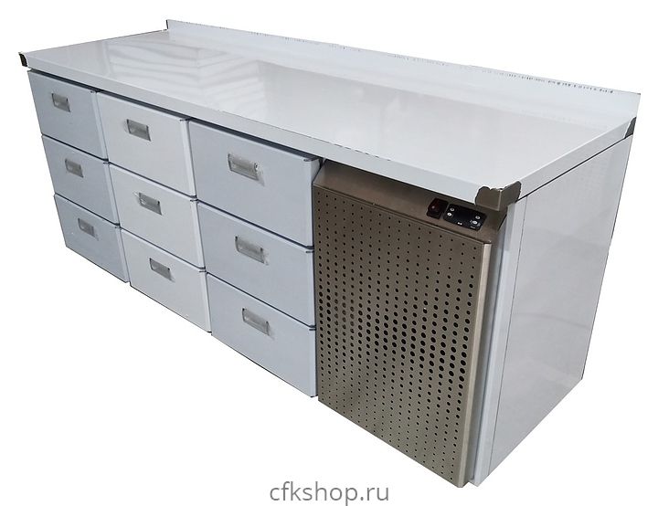 Холодильный стол ЦМИ СХП-3Я+3Я+3Я-183/70 предназначен для хранения предварительно охлажденных мясных и рыбных полуфабрикатов, заготовок для салатов, молочной продукции, охлажденных напитков и других пищевых продуктов на предприятиях общественного питания и торговли. Модель оснащена электронным управлением, 9 ящиками, защитным бортом и ножками с заглушками. Корпус выполнен из нержавеющей стали, заглушки - из пластика.