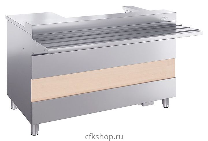 Кассовый стол ATESY Ривьера КСП-1120-02 используется на предприятиях общественного питания и торговли для оборудования рабочего места продавца-кассира. Модель оснащена розеткой для подключения кассового аппарата, расположенной со стороны обслуживающего персонала. Корпус и направляющая для подносов выполнены из нержавеющей стали AISI 430, столешница - из нержавеющей стали и усилена листом ламинированной ДСП толщиной 16 мм, ножки - из нержавеющей стали с пластиковой опорной частью.